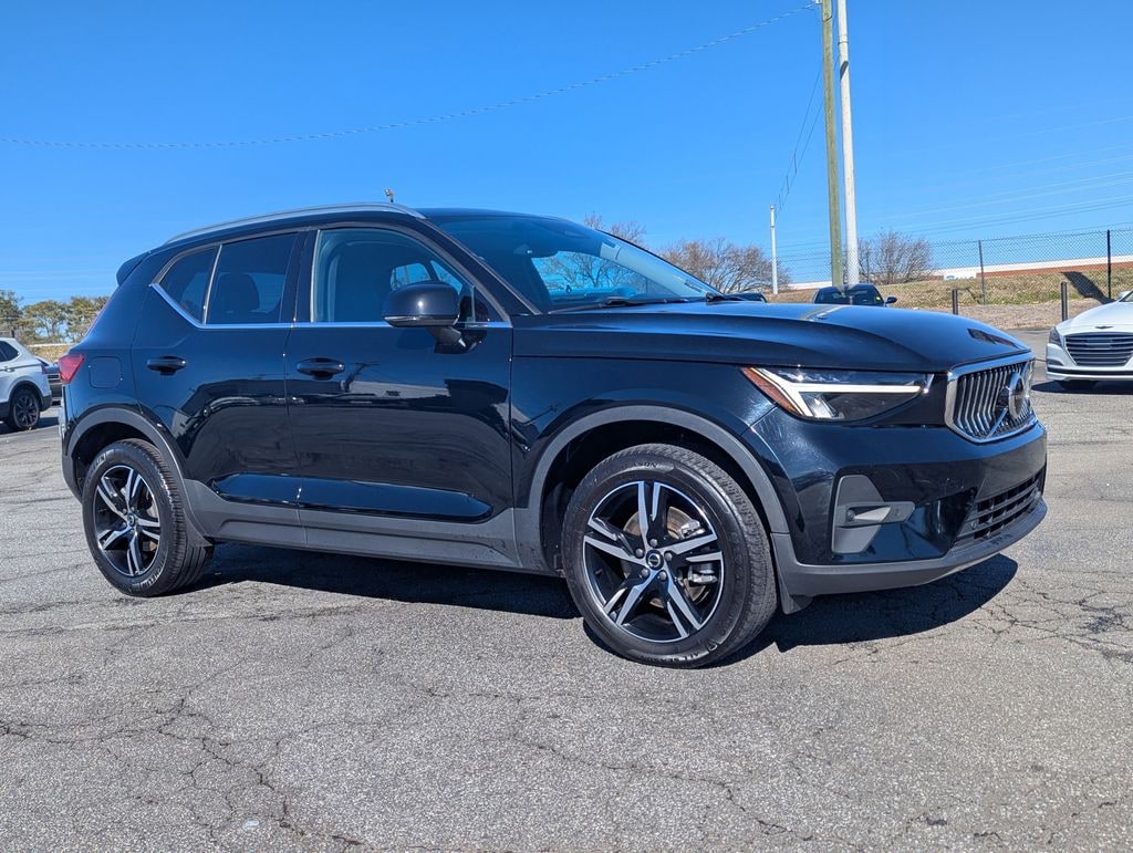 Black 2023 Volvo XC40 B5 Plus Bright Theme 2.0L I4 Turbocharged DOHC 16V LEV3-ULEV70 Automatic with Geartronic 4D Sport Utility Internet access capable: Digital Services Package w/ 4 Year Subscription, 4-Wheel Disc Brakes, 8 Speakers, ABS brakes, Air Conditioning, Alloy wheels, AM/FM Radio, AM/FM radio: SiriusXM, Apple CarPlay, Auto High-beam Headlights, Auto-dimming door mirrors, Auto-dimming Rear-View mirror, Automatic temperature control, Brake assist, Bumpers: body-color, Delay-off headlights, Driver door bin, Driver vanity mirror, Dual front impact airbags, Dual front side impact airbags, Electronic Stability Control, Emergency communication system: Volvo Cars App w/4 Year Subscription, Exterior Parking Camera Rear, Four wheel independent suspension, Front anti-roll bar, Front Bucket Seats, Front Center Armrest, Front dual zone A/C, Front fog lights, Front reading lights, Fully automatic headlights, Garage door transmitter: HomeLink, Heated door mirrors, Heated front seats, Illuminated entry, Knee airbag, Leather Seating Surfaces, Low tire pressure warning, Memory seat, Navigation System, Occupant sensing airbag, Outside temperature display, Overhead airbag, Overhead console, Panic alarm, Passenger door bin, Passenger vanity mirror, Power door mirrors, Power driver seat, Power moonroof, Power passenger seat, Power steering, Power windows, Radio data system, Rain sensing wipers, Rear anti-roll bar, Rear fog lights, Rear reading lights, Rear seat center armrest, Rear window defroster, Rear window wiper, Remote keyless entry, Security system, Speed control, Speed-sensing steering, Split folding rear seat, Spoiler, Steering wheel mounted audio controls, Tachometer, Telescoping steering wheel, Tilt steering wheel, Traction control, Trip computer, Turn signal indicator mirrors, Variably intermittent wipers, and Wheels: 18" 5-Double Spoke Black Diamond Cut Alloy.